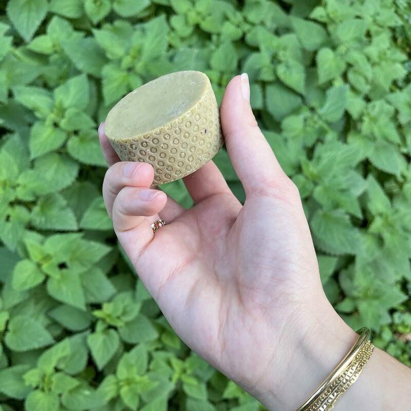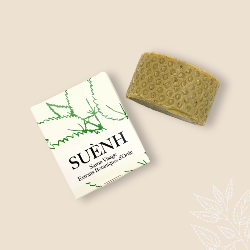 Un savon visage doux, formulé à base d’huiles végétales bio et de feuilles fraîches d’ortie récoltées à la main sur nos terres.
